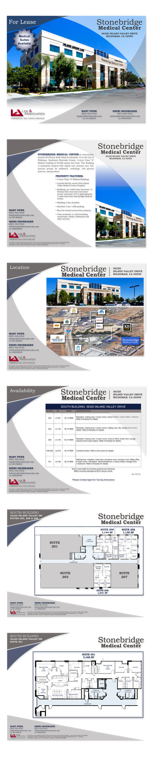 Marketing brochure highlighting a office building and its available spaces to prospective clients.
