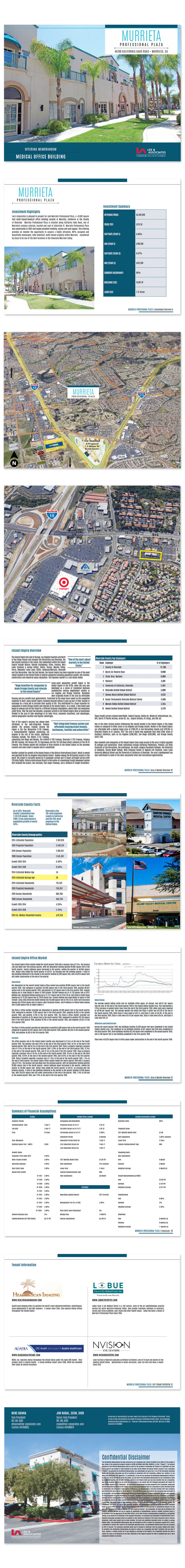 This offering memorandum was created to highlight the features of this medical plaza that is being offering for sale in Murrieta, CA. Custom aerials, layouts and financial pages were designed for this project.
