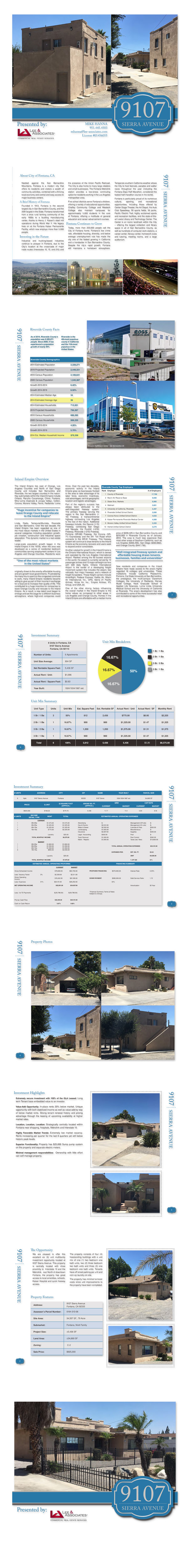 Offering Memorandum designed to showcase a property in Fontana, CA. Filled with vital information such as charts, graphics and content presented to prospective buyers.